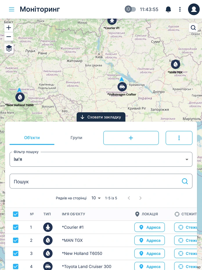 • Додайте об’єкти. Контролюйте свій автопарк та оптимізуйте бізнес-процеси.