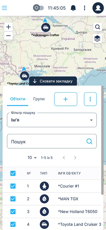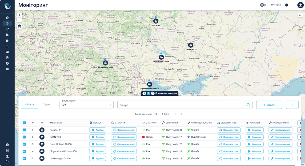 • Додайте об’єкти. Контролюйте свій автопарк та оптимізуйте бізнес-процеси.