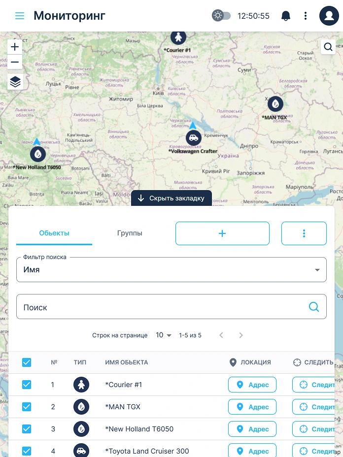 • Додайте об’єкти. Контролюйте свій автопарк та оптимізуйте бізнес-процеси.